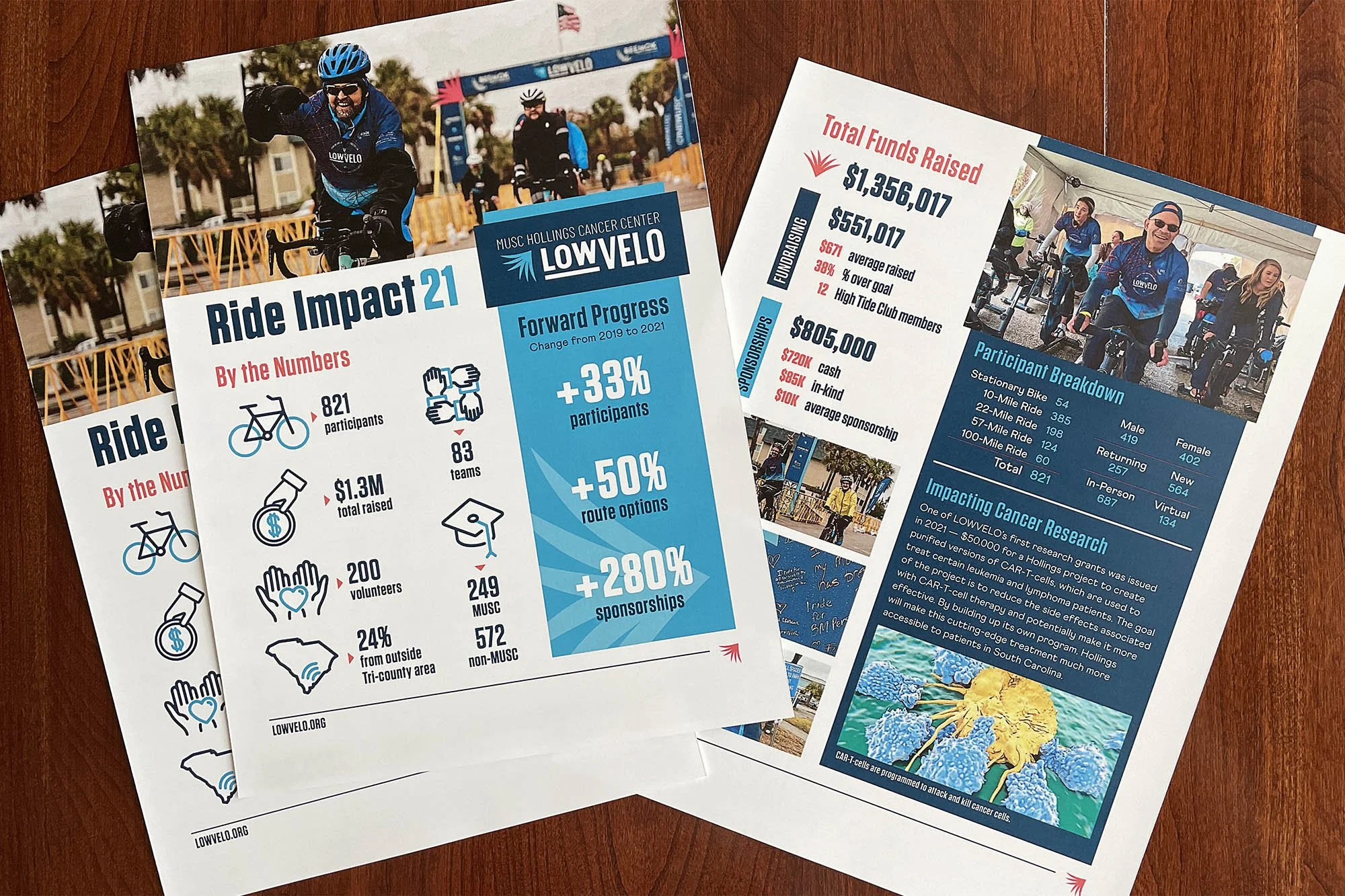 I created large-scale signage and graphics for LOWVELO, MUSC Hollings Cancer Center’s fundraising bike ride. I also developed LOWVELO’s Wordpress website and designed a range of graphics and collateral to support marketing efforts.